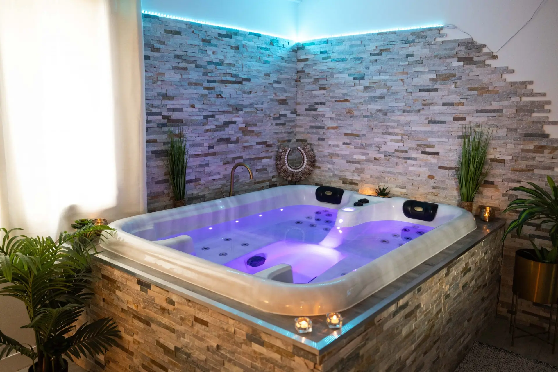 Vous pourrez vous y détendre dans son spa privatif 4 places avec de nombreux jets et lumières